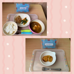 主菜は、豚の生姜焼き。しっかりと下処理をしたことにより、少し厚めの豚ロース肉でしたが、柔らかくなりました。玉ねぎと甘辛のタレがよく絡み、子ども達もよく噛んで食べていました。
