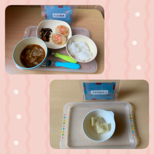 主菜は、コロッケ。柔らかく蒸したじゃがいもを潰して、炒めた玉ねぎ、ツナと混ぜて成形したコロッケ。外はカリッと、中はホクホクで、じゃがいもの甘味があり子ども達もたくさん食べました。
