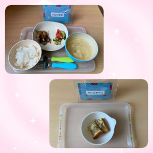 おやつは、じゃこトースト。国産小麦の食パンにマヨネーズで和えたじゃことチーズをのせてトーストしました。みんな嬉しそうによく噛んで食べていましたよ。