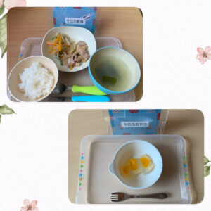 おやつは、みかんゼリー。今日も暑い日だったので、冷たいつるんとしたおやつがぴったりでした!みんなニコニコと嬉しそうに完食でした♡