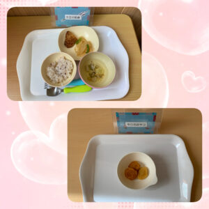 おやつは、豆腐ドーナツ。豆腐、米粉、卵を使ったドーナツ。少しきび糖で甘味をつけました。ヘルシーでモチモチとしたおやつです。「おいしい♡」と嬉しそうにおかわりもしていました!
