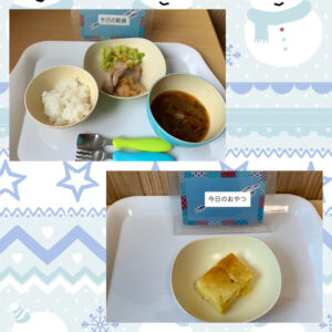 おやつは、パインのパウンドケーキ。先日園児さん宅から頂いたパイナップルを細かく切り、オリゴ糖を少し加えて煮たコンポートを生地に混ぜ、オーブンで焼きました。パイナップルの風味がケーキいっぱいに広がり、お部屋までいい香り(^^)「おいしいー!」と大好評でした。ありがとうございました(*^^*)