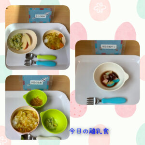 今日は子ども達の大好きなカレーライス!じゃがいも、人参、玉ねぎ、しめじ、ツナが入っています。柔らかく煮えた野菜も一緒にパクパクと食べ、おかわりもしっかり出来ました(^^)