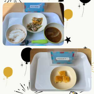 おやつは頂いたパイナップルを使ったケーキ。口いっぱいにパイナップルの風味が広がり、爽やかなケーキになりました。