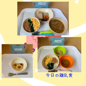 副菜は高野豆腐、椎茸、人参の煮物。タンパク質や鉄分、カルシウムが凝縮された栄養価の高い高野豆腐。味が染み込みやすく、柔らかいので、小さな子ども達にも食べやすい食材です。