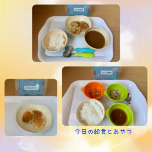 おやつは豆腐パンケーキ。豆腐の水分に少し豆乳を足して作った生地、焼くとふわふわで子ども達も嬉しそうに食べていました♪